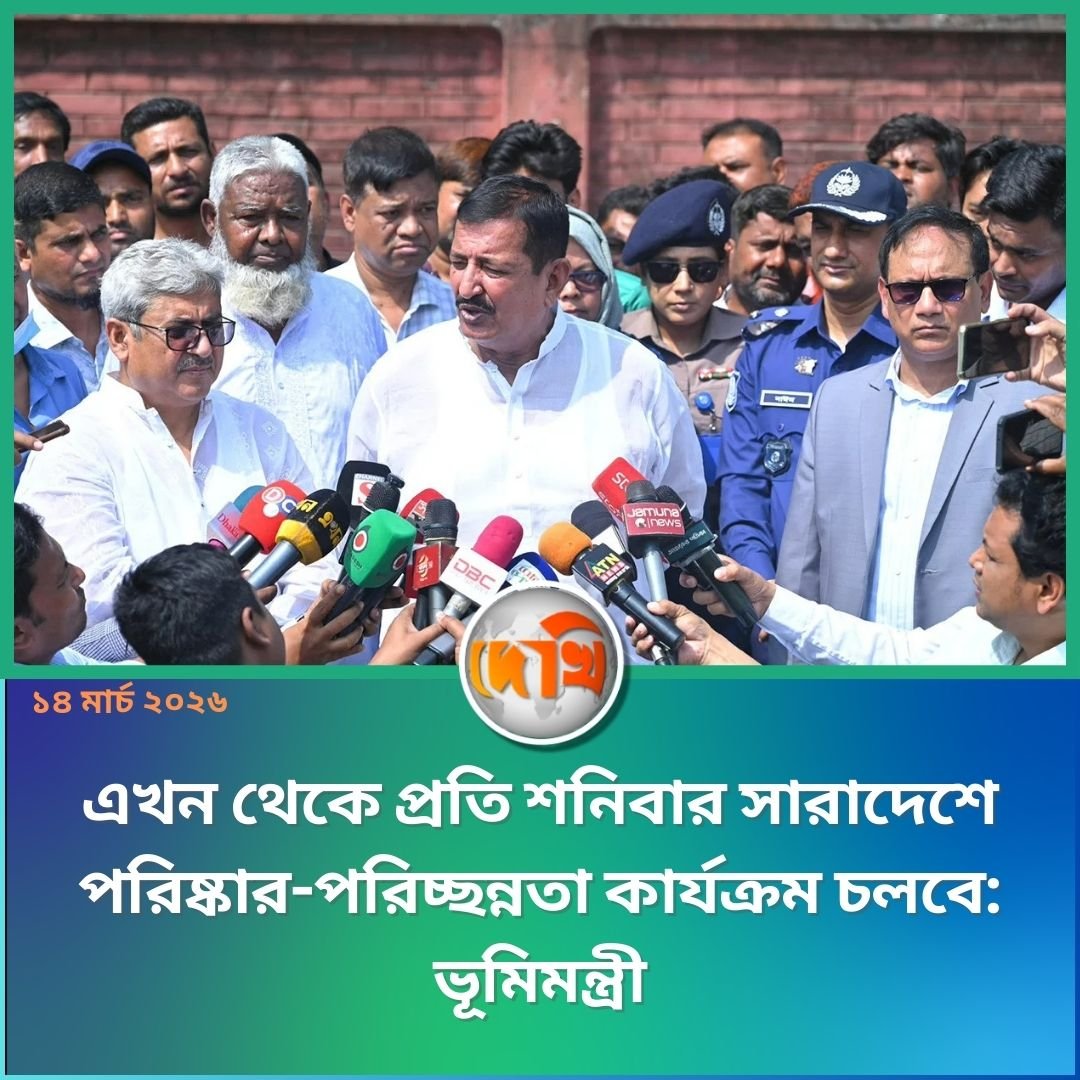 ভূমিমন্ত্রী বলেন, সরকারের উদ্যোগে প্রতি শনিবার দেশের বিভিন্ন এলাকায় নদী, খাল ও বিলসহ অপরিষ্কার স্থানগুলো পরিষ্কার করার কাজ চলবে। এজন্য সংশ্লিষ্ট এলাকার মন্ত্রী ও সংসদ সদস্যরা সরাসরি তদারকি করবেন। তিনি আরও বলেন, এ ধরনের কর্মসূচি বাস্তবায়নে কোনো আনুষ্ঠানিকতা, বেলুন উড়ানো বা আড়ম্বরপূর্ণ আয়োজনের প্রয়োজন নেই।