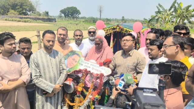 প্রতিনিধি দলটি সেখানে প্রধানমন্ত্রীর পক্ষ থেকে একটি ব্যাটারিচালিত রিকশা ও নগদ অর্থ টুলি বেগমের হাতে তুলে দেন।