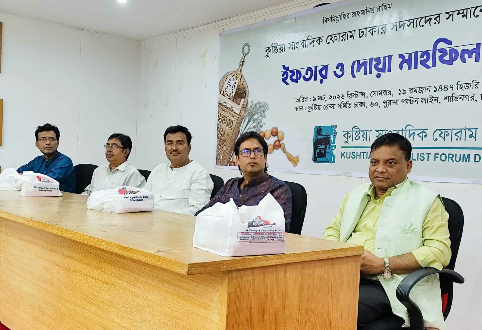 ঢাকায় কর্মরত কুষ্টিয়া জেলার সাংবাদিকদের সংগঠন কুষ্টিয়া সাংবাদিক ফোরাম ঢাকা প্রতিবছরের মতো এবারও পবিত্র মাহে রমজান উপলক্ষে এ আয়োজন করে। ইফতার মাহফিলে সংগঠনের সদস্যসহ ঢাকায় কর্মরত কুষ্টিয়া জেলার বিভিন্ন গণমাধ্যমের সাংবাদিকরা উপস্থিত ছিলেন। এ সময় পারস্পরিক সৌহার্দ্য, ভ্রাতৃত্ববোধ ও পেশাগত সম্পর্ক আরও সুদৃঢ় করার প্রত্যয় ব্যক্ত করা হয়।